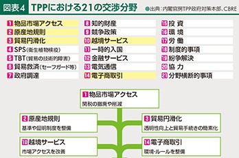 従来の経済協定が、関税の撤廃に重点が置かれていたのに対して、TPPでは国境を越えた経済活動を円滑にするための、共通ルールを設定しようとする点に大きな違...
