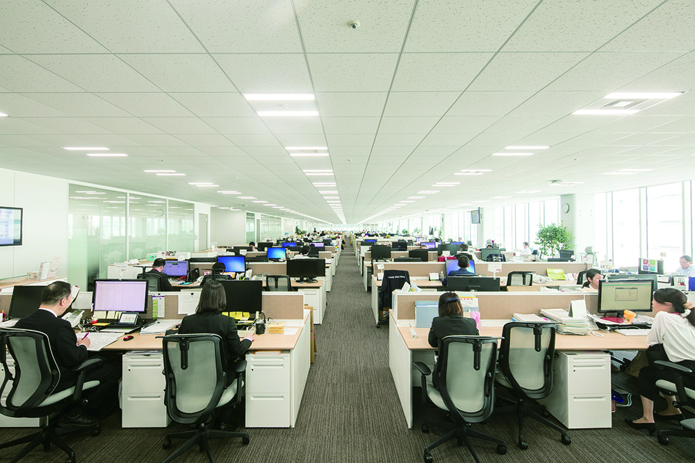 全社員をワンフロアに集約 開放的で見通しの良い執務エリア
