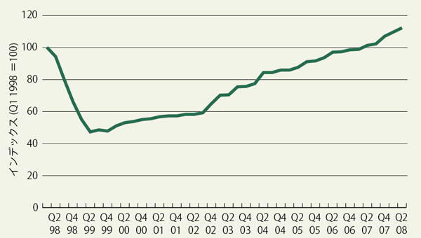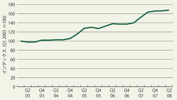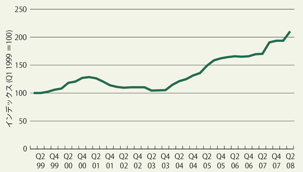 中国における商業用不動産マーケットの動きを見ると、上海では2008年第2四半期に竣工した店舗物件はなく、供給が抑えられたことから、店舗賃料の伸びが回復した。