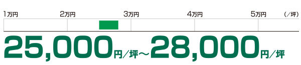 2014年12月期の当該ビジネスエリアにおける、大規模賃貸オフィスビルの成約賃料の相場観。CBREが選定した、規模及び設備等でそのエリアを代表すると考えられる複数のオフィスビルの想定成約賃料(共益費を含む、フリーレント等のインセンティブは考慮しない)をもとに作成。なお、同数値は不動産市場における賃料水準に関する意見であり、成約賃料等を保証するものではない。