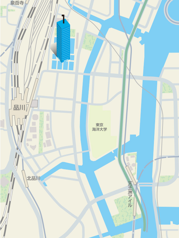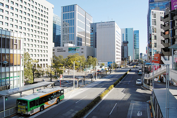 JR品川駅にペデストリアンデッキでつながる品川インターシティや品川グランドコモンズのビル群と、港南口から北側に広がるビジネス街。品川駅はJR山手線をはじめ多くの在来線に加え新幹線も利用でき、また羽田空港へのアクセスにも便利なことから、全国展開企業の本社や外資系企業の日本法人が数多く拠点を構えている。近年は拠点再編等により大型移転が相次いだが、交通利便性への高い評価から空室消化は順調に進んでいる。2020年に田町〜品川間の新駅の完成が決まり、また、芝浦水再生センター再構築に伴う上部利用事業である品川シーズンテラスが2015年2月に竣工を迎え、オフィス街としてのポテンシャルはさらに高まる。しかしながら、賃料面では他のビジネス一等地と比較して弱含みとなっており、競争優位性を打ち出したテナント誘致が必要であろう。