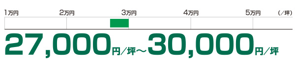 2014年12月期の当該ビジネスエリアにおける、大規模賃貸オフィスビルの成約賃料の相場観。CBREが選定した、規模及び設備等でそのエリアを代表すると考えられる複数のオフィスビルの想定成約賃料(共益費を含む、フリーレント等のインセンティブは考慮しない)をもとに作成。なお、同数値は不動産市場における賃料水準に関する意見であり、成約賃料等を保証するものではない。