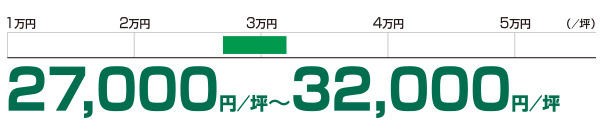 2014年12月期の当該ビジネスエリアにおける、大規模賃貸オフィスビルの成約賃料の相場観。CBREが選定した、規模及び設備等でそのエリアを代表すると考えられる複数のオフィスビルの想定成約賃料(共益費を含む、フリーレント等のインセンティブは考慮しない)をもとに作成。なお、同数値は不動産市場における賃料水準に関する意見であり、成約賃料等を保証するものではない。