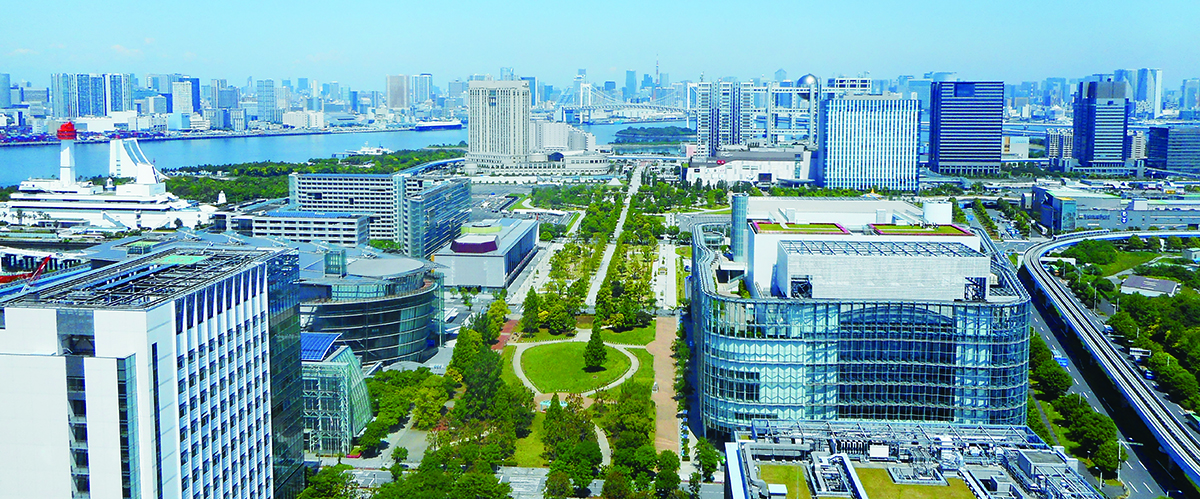 ウォーターフロントの魅力を最大限に生かし、水辺や緑の空間の中で職・住・学・遊の機能が複合したアメニティの高いまちづくりが進められている臨海副都心。来年開催予定の東京2020オリンピック・パラリンピックの聖火台や多くの競技施設があり、注目を集めるエリアです。さらに将来に向けた新たな構想や強靭なBCP対策を誇るオフィスビルに注目します。