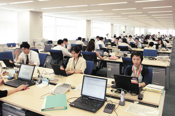 営業部門では、座席数をワーカー数の7割に抑えた。ノートPCを携帯して仕事をするスタイルが浸透した結果、机上で行うのは事務作業のみ。