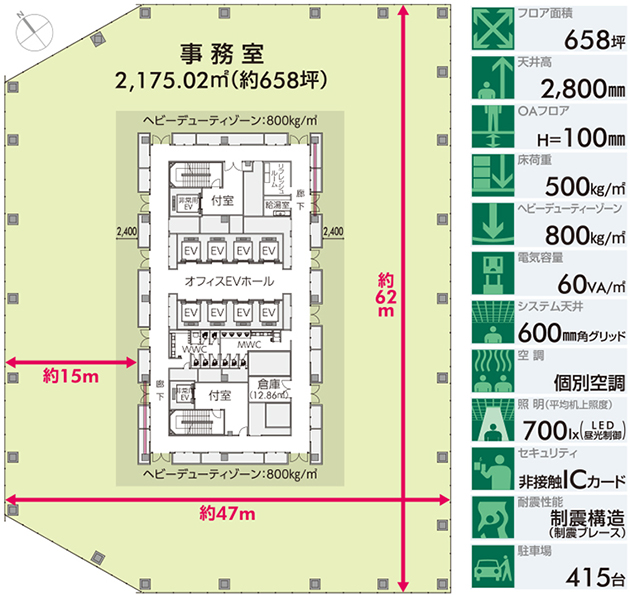 - フロア最大12分割可能(最小面積約33坪)