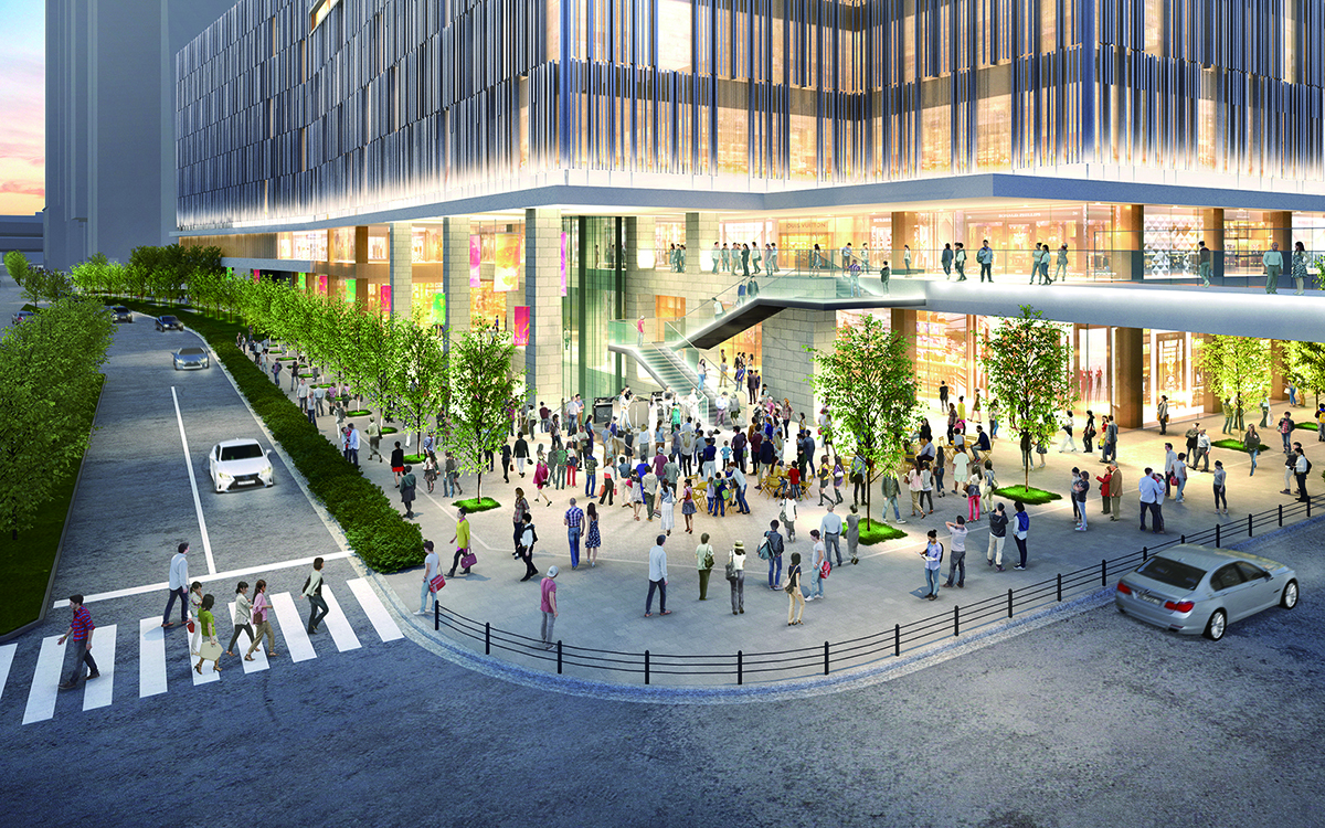 梅田3丁目計画のコンセプトは「つなぐ」。人と人、人と街のつながりを生み出す拠点になることをめざしたもので、我々が郵便で、JRさんが鉄道で、JTBさんが旅を通じて、人と人をつなぐ企業だからこその思想と言えるでしょう。その想いは開発の中で具現化しています。その一つが梅田の街全体を循環する歩行者ネットワークの構築。JRの高架下を通る新たな貫通通路により、北側に新駅、うめきた2期、都市公園が連なり、南には梅田3丁目計画を通って西梅田の街へとつながっています。この通路に沿って開発が進み、今まではなかった南北の流れが新たに誕生します。またビルにはオフィス、商業、劇場、ホテルという四つの複合機能を取り入れました。これにより、例えば、劇場の演目を企業イベントと連動させたり、劇場を講演会や株主総会に利用してもらったりすることを考えています。ホテルのバンケットホールもあるので新商品発表会やレセプションも開けるなど、単体ではなく、それぞれの機能が連携できる活用法を提案していきたいと考えています。多様な機能を介してテナントや人をつなぐことによるバリューの提供は、他ではできないことでしょう。