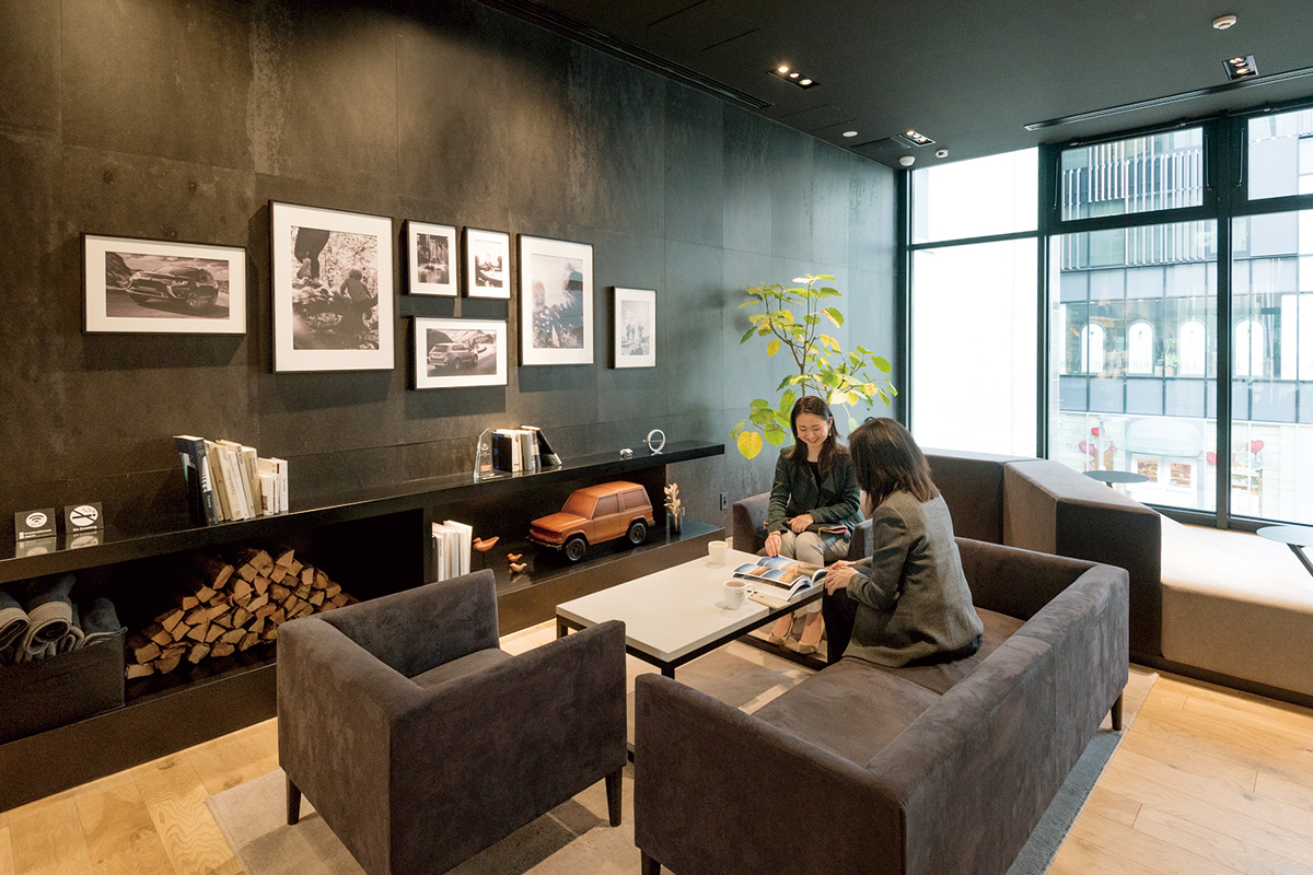 三菱自動車の他にもこの土地に目をつけていた企業はいたが、その後、CBREとともに土地オーナーをはじめとする関係者と交渉を続け、土地を取得できたのが2018年10月。予定していたショールームのオープンまで残る期間は1年ほどだったが、緑が映える庭付きの物件であったことは、プロジェクトチーム内はもとより社内でも共通したイメージを持つことができ、ショールームにおける実際の展示内容などは驚くほどスムーズに決定されていったという。同社デザイン本部で、ブランディングデザインを総括するデザイン戦略・企画部担当部長の川崎晃敬氏は、「ショールームに庭があることで、一気に道が拓けた感覚がありました。庭があれば車をそこに展示でき、建物などもゲストハウス風にしてみてはどうだろうと次々とアイデアが広がっていきました。もちろん、すでにリニューアルに取りかかっていたディーラー店とも基本的なトーンは揃えつつ、グローバルなショールームとしてふさわしい展示内容を検討していきました」と、その手ごたえを語る。