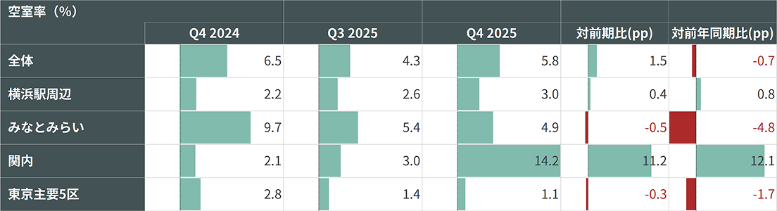 CBREの予測では、2026年は横浜エリア全体で新規供給の予定がありません。空室率は2027年Q1には3.8%まで低下する見通しです。いまが、ゆっくり選べる貴重なタイミングかもしれません。