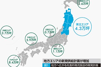 昨年から世界的に猛威をふるう新型コロナウイルス感染症は、外出規制による巣ごもり需要を生み、日本の3大都市圏において、活発化していた物流施設開発にさらに拍車をかけています。このような物流環境を取り巻く急激な変化は、それまで物流適地としてあまり注目を集めることのなかった地方エリアにもおよび、先進的物流施設の新規供給計画は全国に拡大しています。