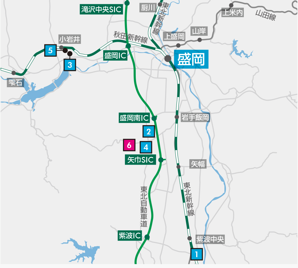 北東北最大の消費地であり、岩手県ならびに北東北3県の物流拠点としての存在感を増しているエリア。東北自動車道「盛岡南IC」「矢巾SIC」から近く、物流業・事業会社・地元企業が多く立地し、食品・日用雑貨品など消費財を扱う企業から根強い需要が存在しています。