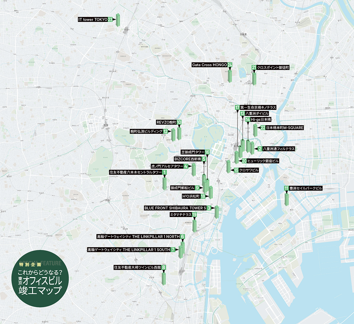 竣工年別、東京オフィスビルの竣工予定マップ2026年版。貴社の経営戦略や移転計画に、ぜひ、お役立てください。