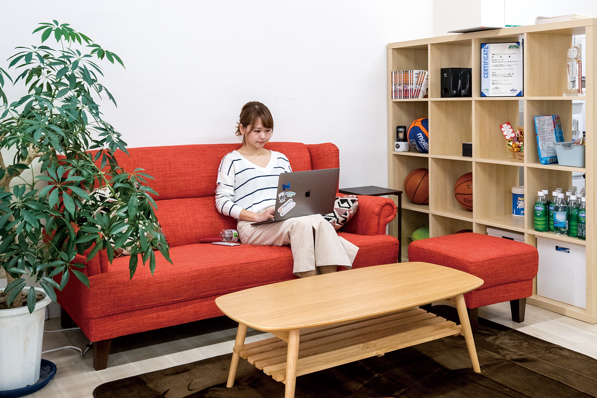 オフィスづくりは、最初、自分たちで家具を揃え、「会議室は一つでいいよね」「室内はこういう動線がいいよね」「明るい色味にしたいね」という話し合いから始まりました。今はなくなってしまいましたが、昔は土足禁止の「芝生コーナー」を設け、座ってご飯を食べたり、ちょっとした会話をしたり、みんなの「こういう場所が欲しい」という意見をなるべく取り入れながらオフィスを完成させていきました。