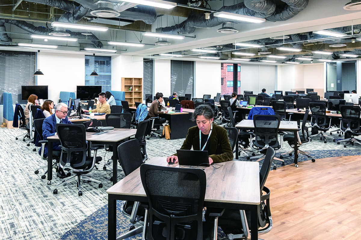 スタッフたちは会社の成長を支える「資産」。会話が生まれ、生産性高まるオフィスを目指す。
