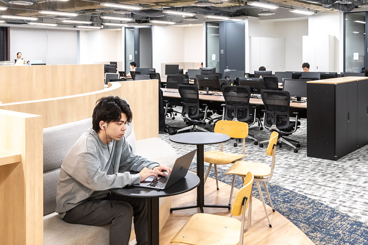 その後、オフィス移転が喫緊の課題となったのは、2023年です。というのも、コロナ禍の間に弊社は業績が伸び、社員も3倍に増えました。コロナ禍が明ける少し前から、営業スタッフを中心に出社勤務の体制に戻していきましたが、すぐに無理が出ました。執務スペース以外の場所で仕事をするのは当たり前で、リモートの商談があれば、騒がしいオフィスではなく近くのカラオケ店で打ち合わせをしたり、機密情報を扱う時には、近隣の貸し会議室を利用することも多かったです。その結果、役員の判断で「これは一大事だ」と、今のオフィスへ引っ越してきました。