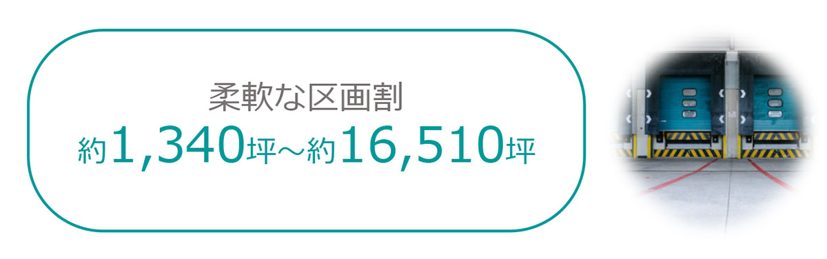 1階 9,132㎡(2,762坪) 2,276㎡(688坪) 738㎡(223坪) 362㎡(109坪) 床荷重:3.0t/㎡(3.5t カウンターフォーク走行可能)