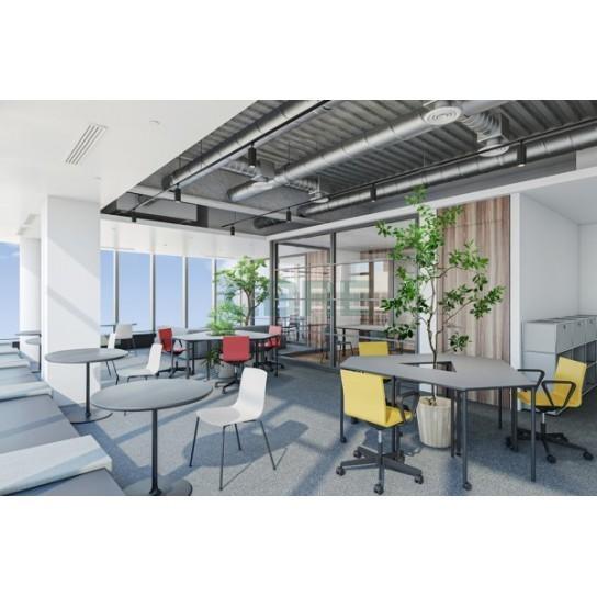 | 特徴 | ◎デザイン性高い内外装に加え、天井スケルトン仕様◎会議室2室が造作済みで、入退去工事コスト/期間が大幅に圧縮可能 ◎トリプルセキュリティ(エントランス/ELV籠内/執務ゾーン入口) ◎入居者専用屋上庭園、1Fに日替わりフードトラック ・パース写真には什器がありますが、什器はハーフセットアップの標準仕様に含まれません(別途) |