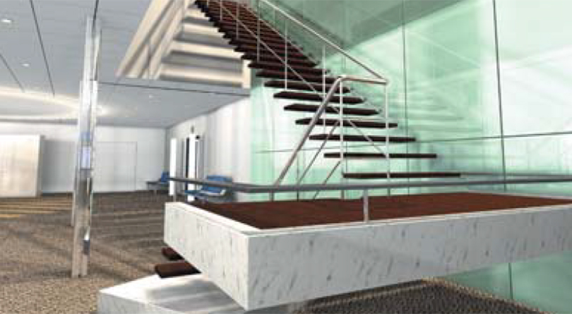 上下階の移動を必要とするテナントのために、専用階段を設置できるスペースを1フロアに3カ所ご用意しています。※位置·形状等に制限があります。