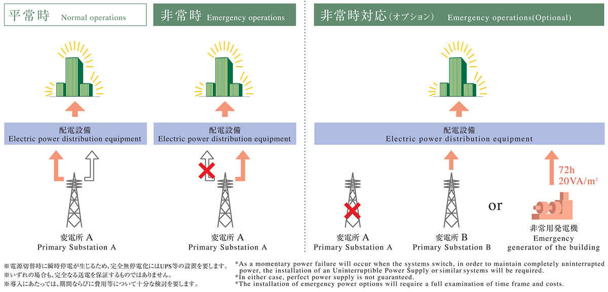 • 非常用発電機による電力供給。(オプション)