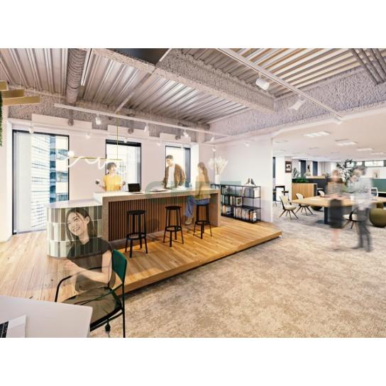 | 特徴 | オフィスエントランス、会議室4室(6名用、10名用、4名用、5名用)、執務エリア39席・その他エリア(ラウンジなど)41席の什器付き内装付きのセットアップ仕様オフィスです。 |