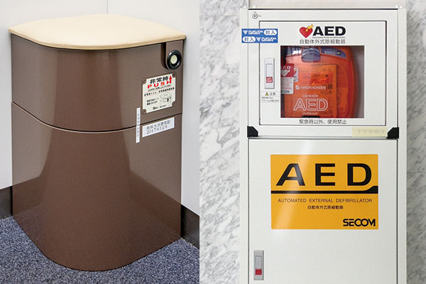 万一の停電に備え、ビル防災に必要な設備への電力供給が可能な非常用発電機(1,500kVA、1,950㍑)、および非常照明用の蓄電池を用意しています。