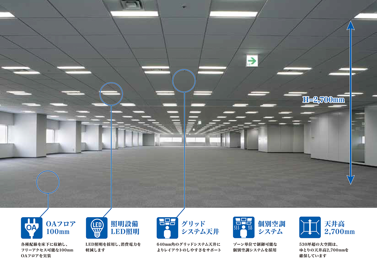 | 基準階面積 | 530.12坪 / 1,752.47m2 |