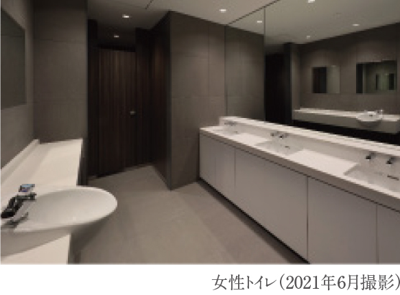 女性トイレには、ゆっくりと身だしなみを整えられるパウダーコーナーをご用意いたしました。